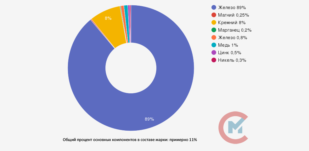 • Кремний (Si) 8-11%